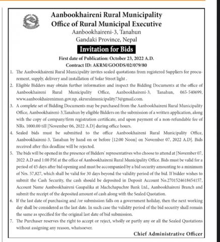 सार्वजनिक खरिद/बोलपत्र सूचना